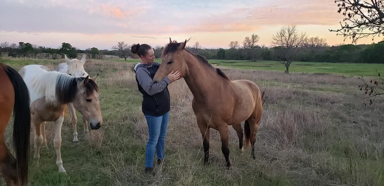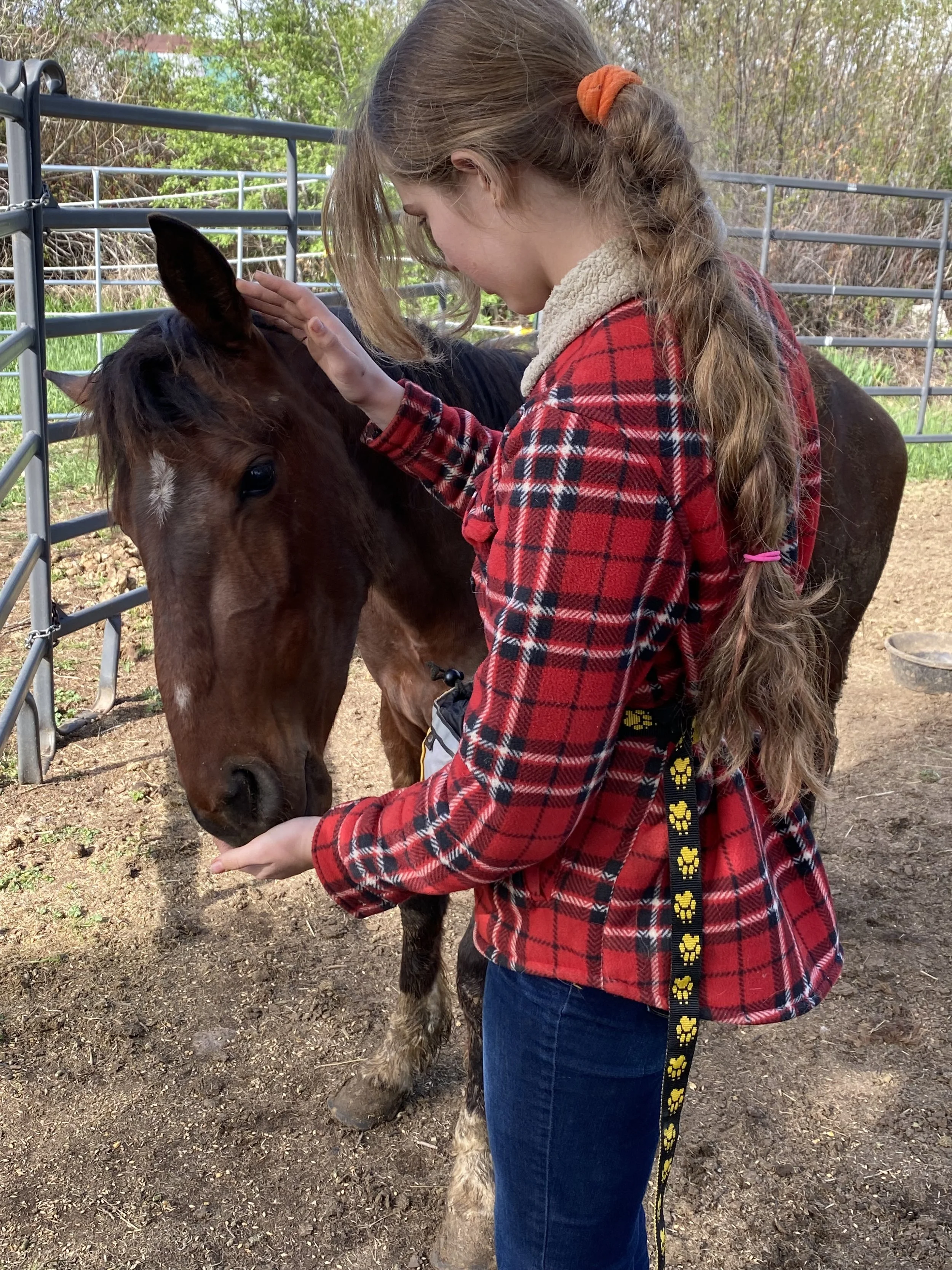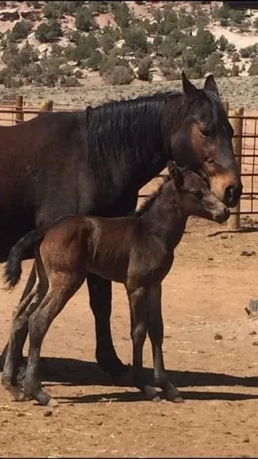 Rosie was saved from a Texas kill pen and came to Wild Spirit Mustangs at the same time as Spencer and Blaze. My good friend Dee helped unload the three when they arrived, and she immediately fell in love with little miss Rosie. In the days and weeks that followed, Dee would come over every day to earn Rosie’s trust. They built an incredible connection and Rosie soon thereafter was halter broke and ready to go home with Dee and her daughter Daisy, where her new herd mates were anxiously awaiting her arrival. Rosie is living her best life, keeping everyone on their toes and showing off her wild spirit while being ponied on the trails (she is known to be a little spitfire!). Dee is planning to bring Rosie along as her small but mighty pack horse this summer and we think that will be the perfect job for her. We are so thankful to Dee for opening up her heart and home to Rosie and for joining Wild Spirit Mustangs’ Board as the Treasurer.