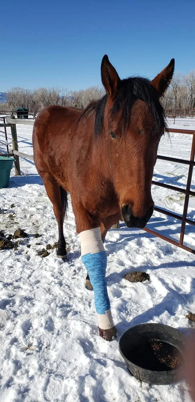 Juneau was saved from the notorious Colorado kill pen (Fabrizius) together with Pedro, River and Dahlia. Jeske reached out to Mountain Shadows Equine Revival based in Laramie, WY to see if they could take in Juneau, as she had a bad bump on her right knee that needed to be seen by a vet asap. The x-rays showed that she would never be sound due to having lost about 80% of range of motion in that joint (right front). Despite this, she is a spunky, happy horse that loves to run and play with other horses. She got very lucky to be adopted by an amazing Wyoming family that were looking for a horse to keep their last senior ranch horse company on their dozens of acres.