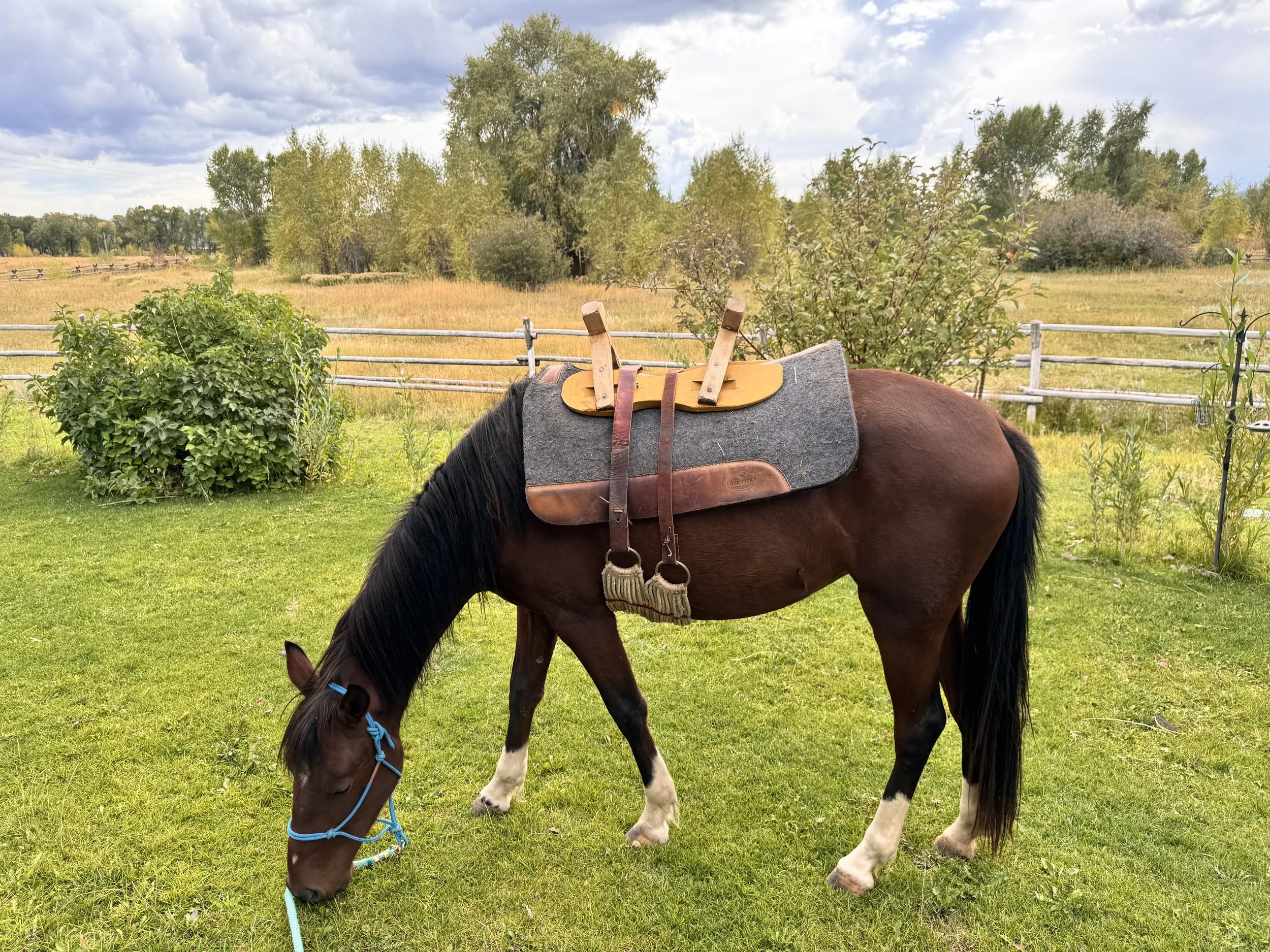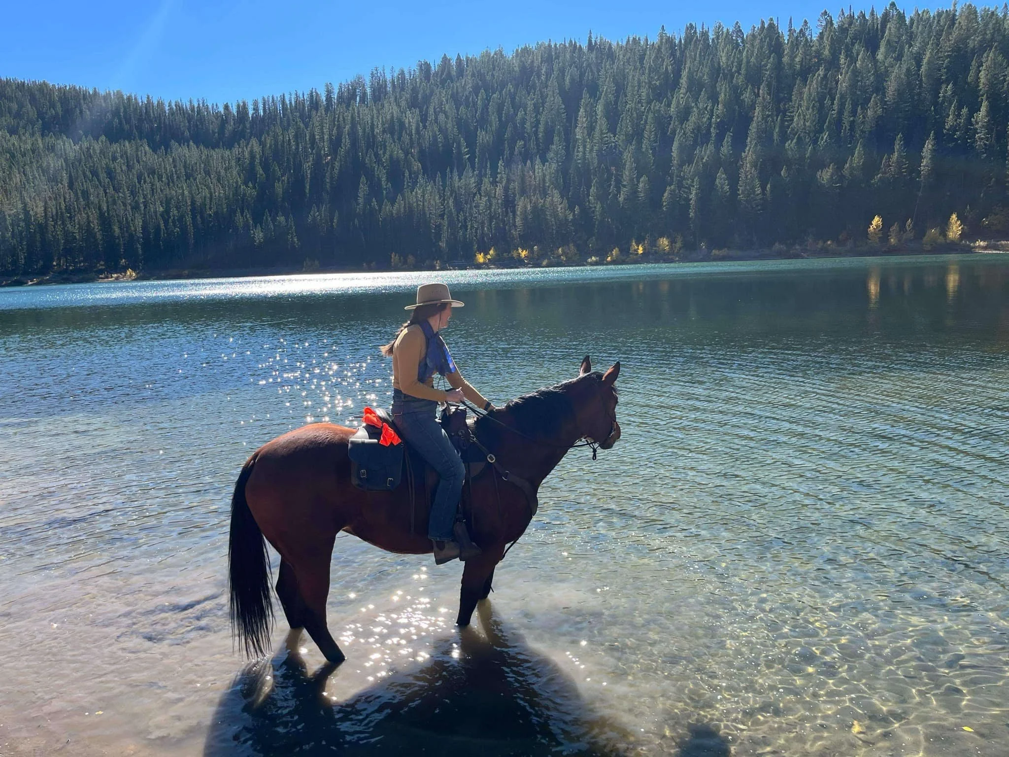 About 4 years ago I adopted Miss Riv, from my dear friend Jeske and it’s been one of the best decisions I’ve ever made. In all the ups and downs with Riv one of the best parts has been seeing her thrive and grow. This last year she’s found her match in my partner Cole. She had her first magical season in the mountains and it was all I ever could have hoped for her! She’s running a herd of 5 horses now on 40 acres and I’ve never seen her happier, stronger both mentally and physically! We love you Miss Riv & thank you Jeske for giving this mare a second chance at life.”