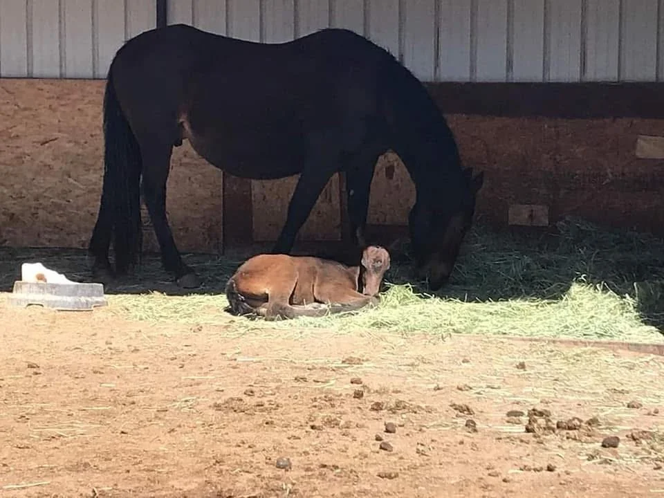 Piper is another save from the same notorious Colorado kill pen (Fabrizius). All the horses that arrived at Wild Spirit Mustangs from the kill pens were very skinny, Piper however, was pretty round and once in my care, kept getting rounder, well….. it turned out she was pregnant! My friend Elaine who had just weaned her young colt from his mother got in touch with me and was looking for a play buddy for her colt and so Piper made the long trek from Idaho to Elaine in Oklahoma! Once Piper’s colt, Zip was born Jeske went to Oklahoma to visit Elaine and meet Piper’s adorable colt. Piper and Zip have found an incredible family with Elaine and her herd of four horses and get to run and play on hundreds of acres. They really hit the jackpot with their forever home!
