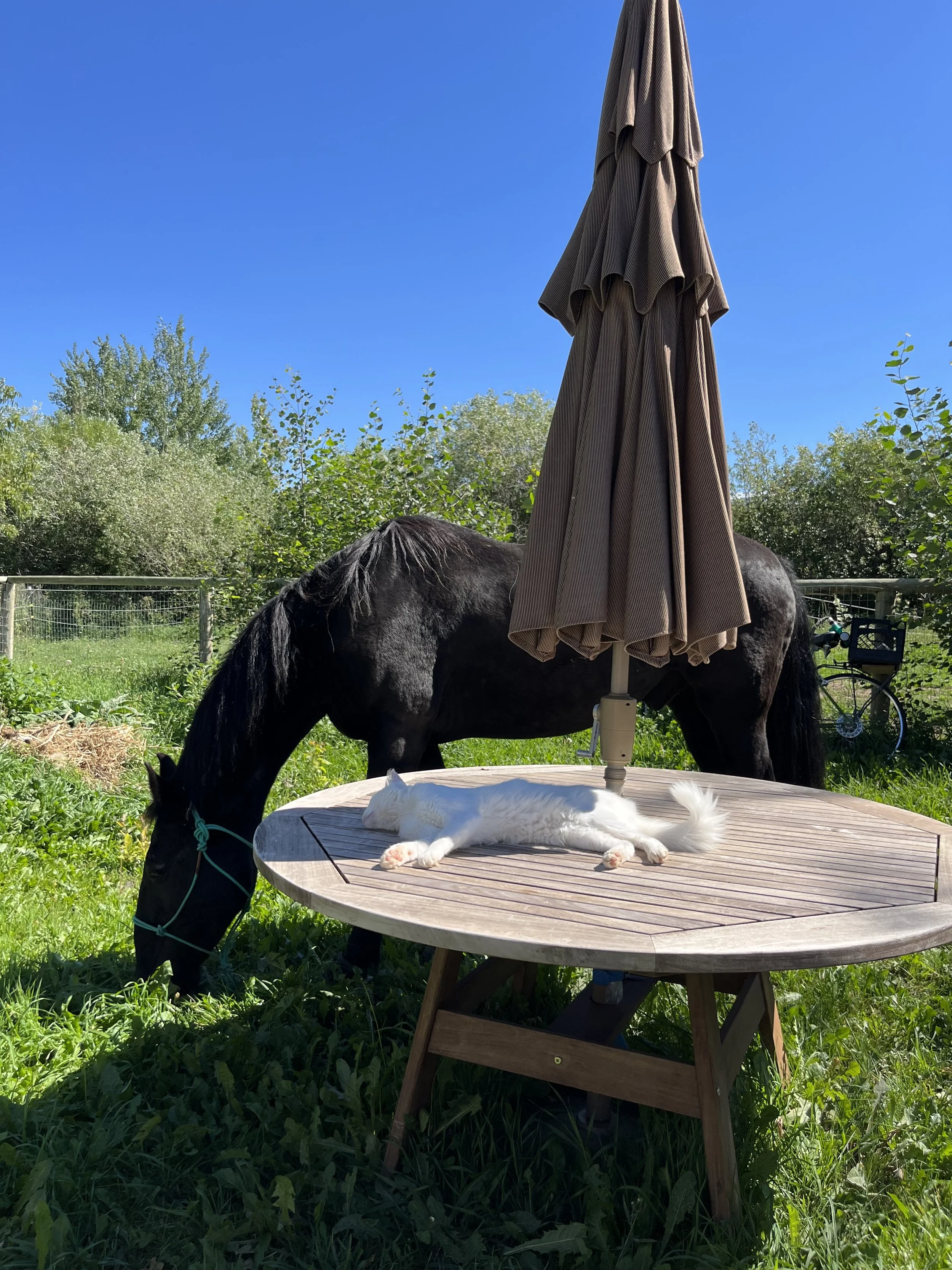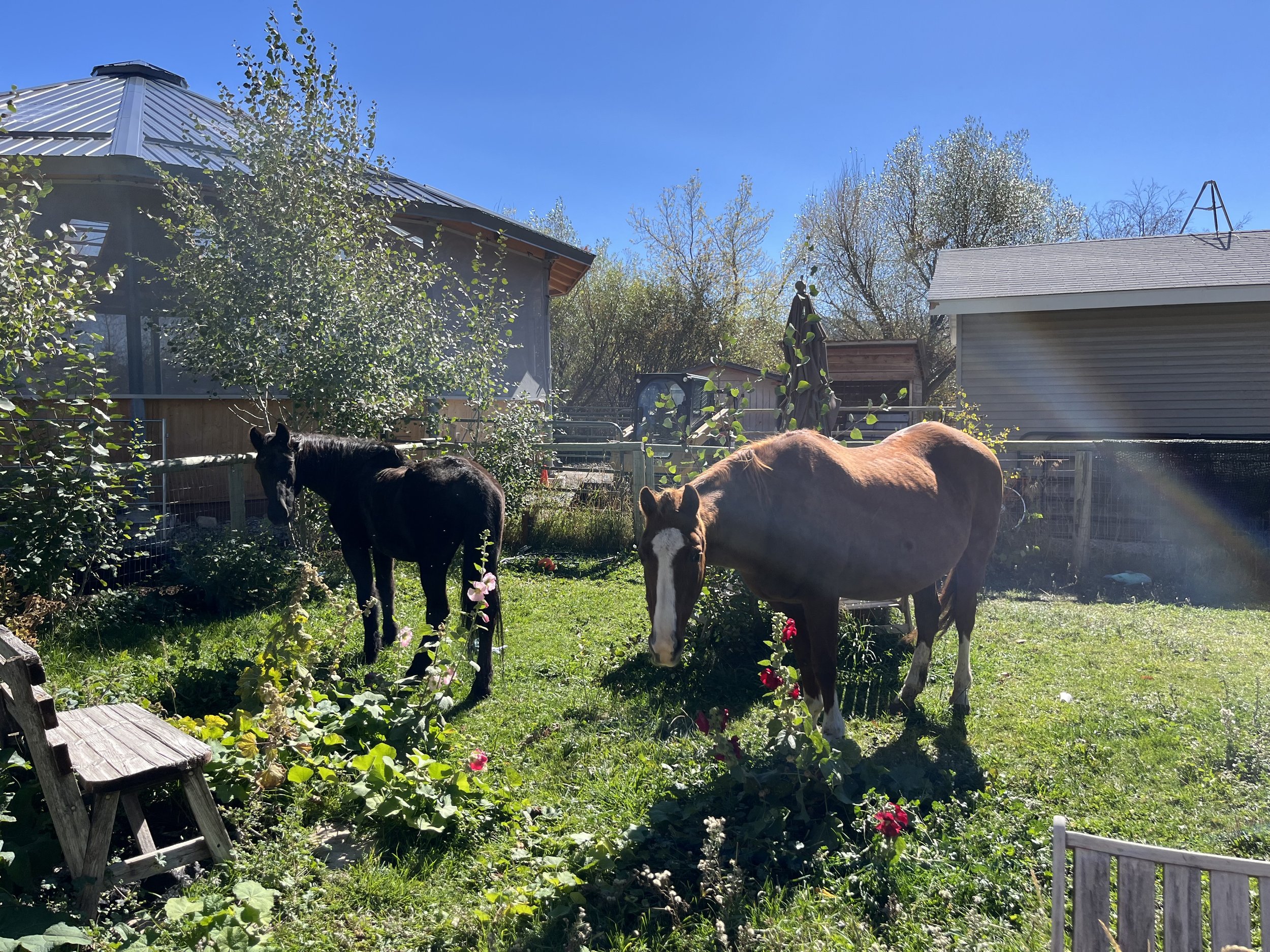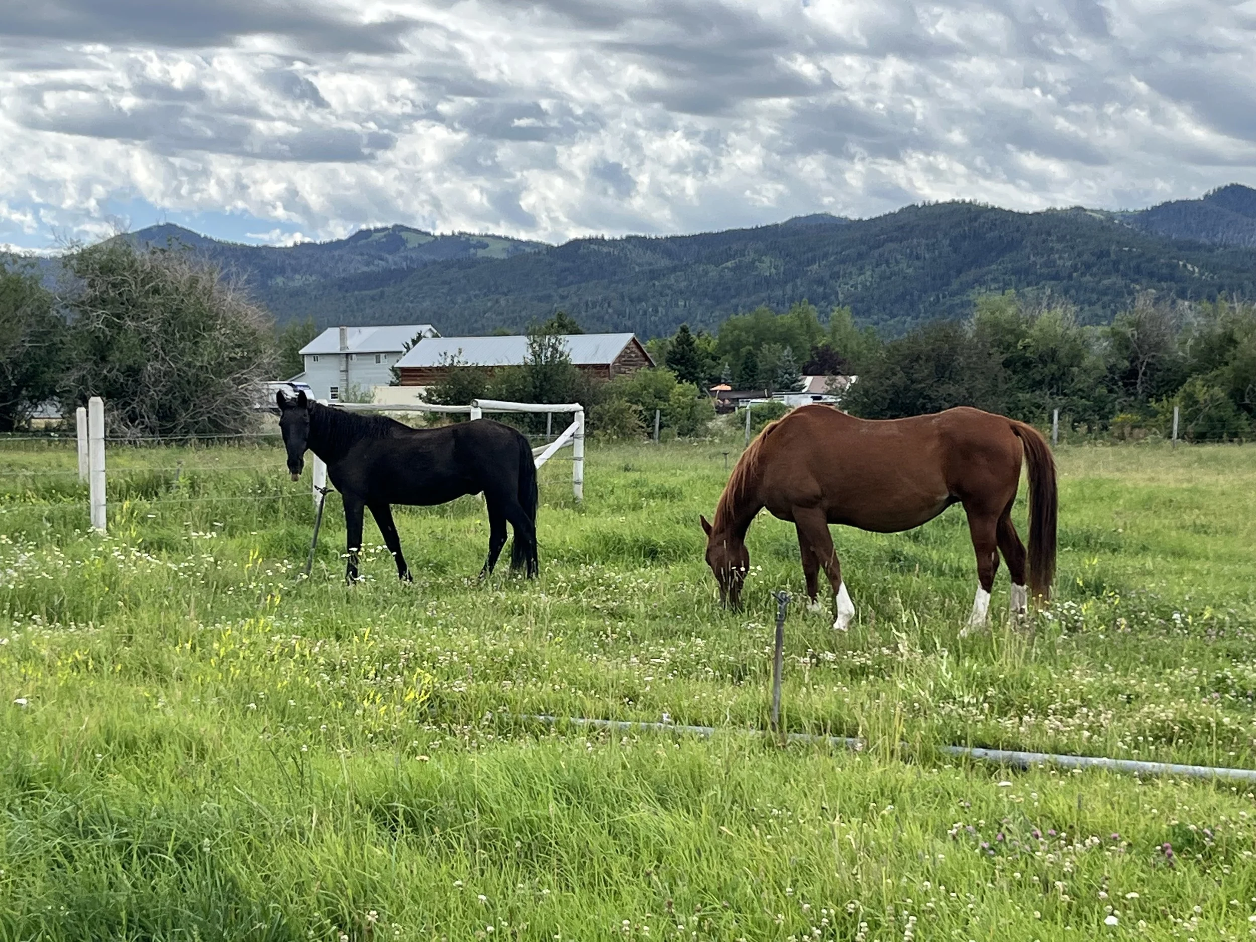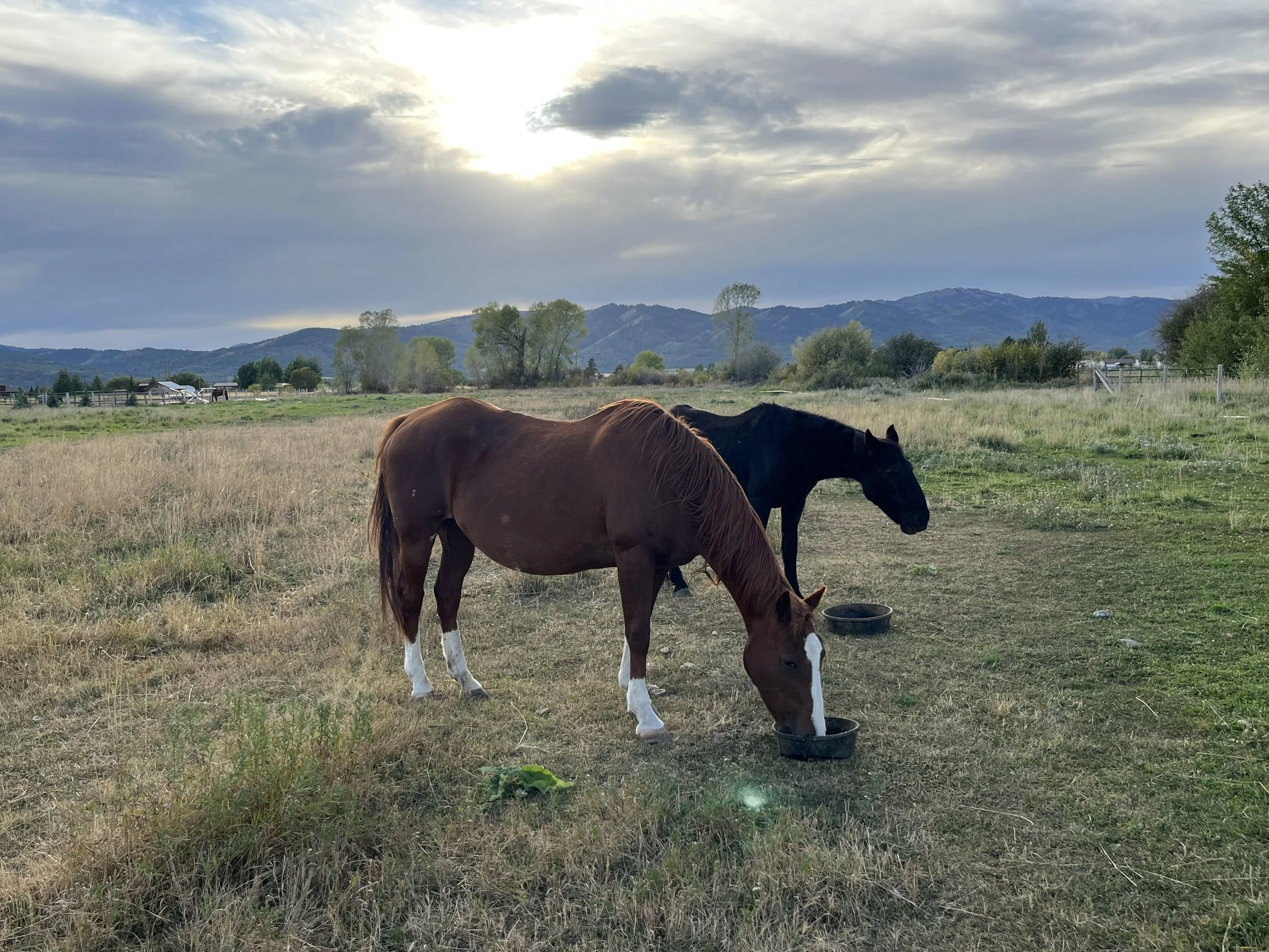 Gris was saved from the Colorado kill pen in December of 2023. After rescuing him, we looked up his freeze brand and it turns out he is from the famous Pryor Mountain herd in Wyoming and he was almost 30 years old! He is an absolute gem of a horse and a fan favorite at Wild Spirit Mustangs. He’s not only a giant sweetheart and an old soul, he also takes amazing care of the littles that take riding lessons on him. He’s been an amazing mentor horse to the younger horses in the herd and when he comes along on trail rides or pack trips. He went through a very serious bout of laminitis when he first came to Wild Spirit Mustangs due to his metabolic sensitivities but thankfully we were able to fully rehabilitate him and adjust his diet and management accordingly to where he’s now thriving. He enjoyed his last couple of years enjoying his well earned retirement and loved grazing side by side with his favorite mare Ruthie. We laid Gris to rest peacefully together with Ruthie on a warm, sunny fall day eating all his favorite snacks.