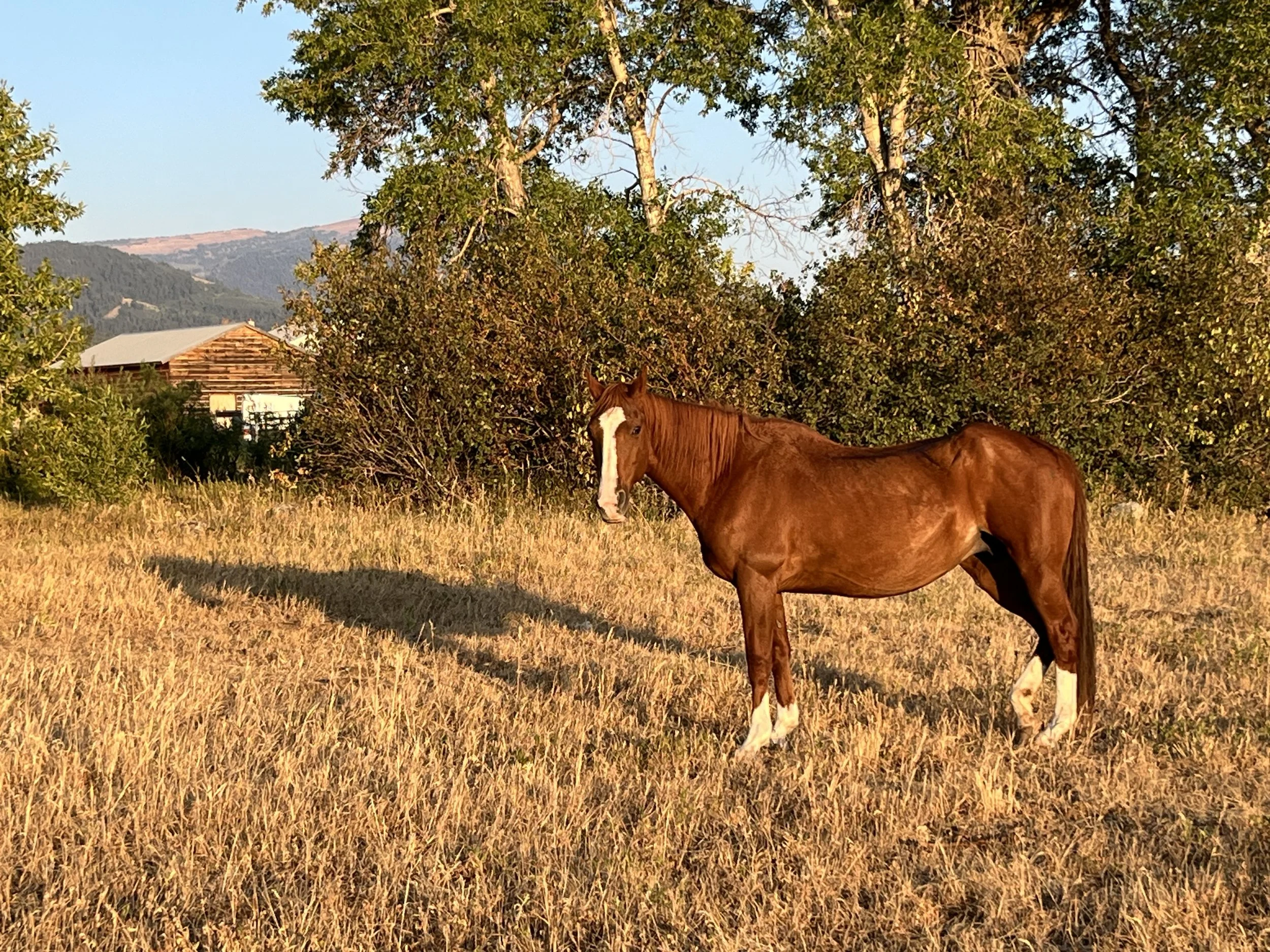 Dahlia was a kind, gentle soul that despite having a broken down, arthritic body, enjoyed life to the fullest. Jeske found her standing by herself in the Colorado kill pen and couldn’t leave her behind. She is so glad she was able to give her the retirement she so deserved at Wild Spirit Mustangs. Winters were hard on her stiff, painful body, but she was always so excited for the lush green grass in May, knowing she would be eating it non-stop all the way through October. In the three years that Jeske had the absolute pleasure of caring for Dahlia, she taught her about resilience, and treating each day as a gift. She was protective of the youngsters (Sophia and Josie), and became close friends with lead mare, Rain, and with Ruthie. When her body just couldn’t keep up anymore we decided it was time to relieve her from the pain. She was returned to the earth at Wild Spirit Mustang on a beautiful, peaceful warm fall day surrounded by love and all of her herd mates. She is missed greatly.